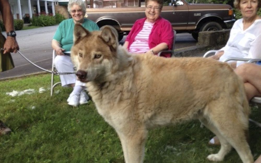We hoped the experience might furnish some insight about a wild animal’s sense of seeking for survival, not unlike our human drive for physical survival. (Of course, we have an added dimension of seeking spiritual health.) I was told by Charity Sr. Fran Grady, executive director of Living Waters, that Gudger would be happy to bring one of his wolves for an evening of learning and discussion about wolves and, by extension, our place in their world. I thought this a good way to sum up the week and provide an interesting experience of our need to be open-minded about things we fear.