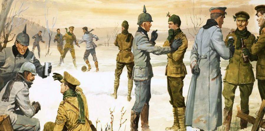 A few years ago I read, Silent Night: The Story of a Christmas Truce by Stanley Weintraub.  In 1914, German and English troops faced each other on Christmas Eve in the heat of battle.  Suddenly, the German troops put up Christmas trees along their trenches after a day of burying their dead.  The English troops, seeing the trees, began singing carols, and, eventually, men from both sides walked toward each other exchanging cognac, gifts of food, and even their home addresses.  A game of touch football then took place between them.  Weintraub had interviewed some of the men who experienced this truce.  They told him that superiors on both sides ordered them not to be friendly but to shoot at the enemy.  Instead, they shot into the air and shook hands with each other.  Each man admitted to Weintraub, he had an intense longing for peace.  This longing overtook the rules of battle.  A truce had been effected.