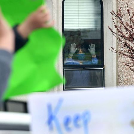 It was an exceedingly cold, rainy day so the residents could not come outside. We made our way around the complex, 50 cars in all. I noticed children leaning out car windows and calling to their grandparents, adult children throwing kisses to their parents, sisters waving posters that read, “We Love You,” and “Hugs to All.” A family stopped and got out of their car to wave under a window.  The Mom with her kids was weeping.  We honked our horns; they gathered in windows and doors. We shouted our blessings; they waved back. One elderly woman pressed her hands against her window like suction cups unable to peel away. Between the caravan and the residents was a threshold, not a chasm.  It was the liminality of love. And I was caught off-guard. (Photo Credit: Cleveland.com)