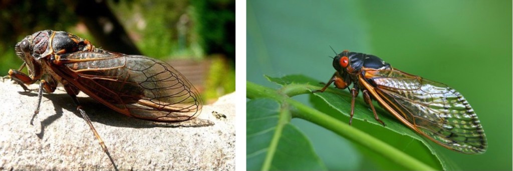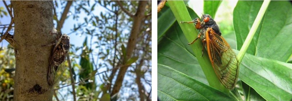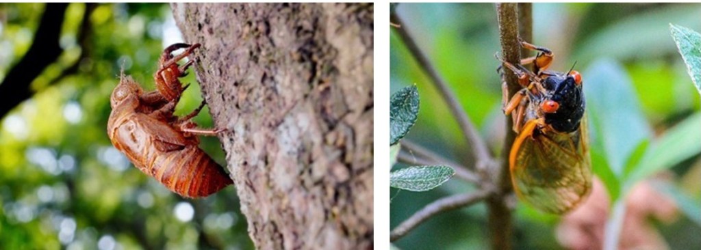Some interesting facts are: Only the males do the humming which can get to 100 decibels, “like a motorcycle warming up next to you,” says Kritsky. Cicadas do not sting or bite humans, are not poisonous and do not carry diseases. They are food for many predators and even curious humans. As such, they are excellent sources of protein. They incubate as nymphs for 17 years underground and become adults as they emerge. Their life cycle continues for about six weeks in which they sing, mate, discharge their eggs in slits they make in tree branches, and then die. Pesticides are not effective on them because they are not pests.