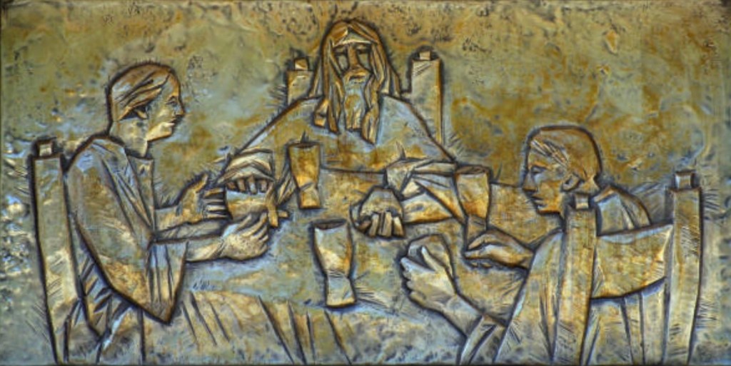 The evangelist Luke is writing for gentiles in his Gospel where this story is told. Some scholars say that Luke moves the teaching on the Eucharist from the Last Supper in its Jewish context of the Passover, to the celebration of Eucharist in a non-Jewish setting at Emmaus, a distance from Jerusalem the seat of the Jewish faith. Further, the meal at Emmaus in not contextualized in a Jewish ritual. Luke is so sensitive to all nationalities and faiths that he establishes that Jesus accompanies everyone through Eucharist, no matter where or with whom. Luke narrates that the two disciples invite Jesus to stay the night after supper with them on the road. When the supper turns into a celebration of the Eucharist, they suddenly recognize Jesus and exclaim that their “hearts were on fire” as he spoke to them. They immediately turn back to Jerusalem to rejoin the apostles. Their Jewish roots are strengthened and their outreach to evangelization assured.