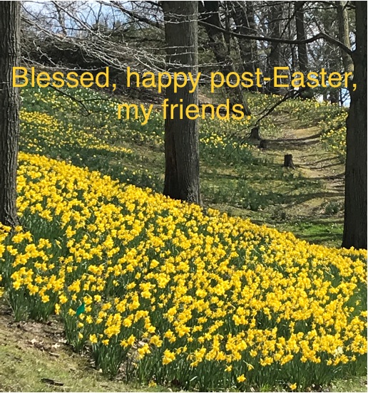 Thelma: We he daffodils in our yard that I anticipate every year. They are a gift when they appear and I am totally in awe. I end up picking them before they die for our altar or table. Their beauty is tenuous but so overwhelming when they appear! S. MAF
