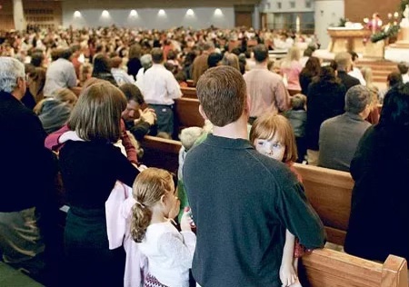 Today, many people ask – especially young people – why is congregational prayer, the Mass, so important and does it contribute to our personal spiritual lives? Congregational prayer is mostly liturgical prayer, meaning the Mass and other types of collective prayer in which a congregation participates on a regular basis. Many of us grew up with the intensely guilt-laden idea that we ‘had’ to go to Mass every Sunday or suffer the consequences of mortal sin. Which meant if we didn’t attend Mass, we were in the state of mortal sin – skating the edge of hell and if we died, well, boom! we tumbled into those sulfurous flames forever!! If choosing not to go to Mass was based on the rejection of God, a recalcitrant ‘no’ to his love and mercy, a disbelief that he, in fact, cannot exist in our mind or soul or exist at all – well, that’s a different story. Most people fall in the first category, just too lazy to attend, or too busy, or too out of touch with the meaning of attending. But in the latter category there is some reason for concern. Again, that’s another topic.
