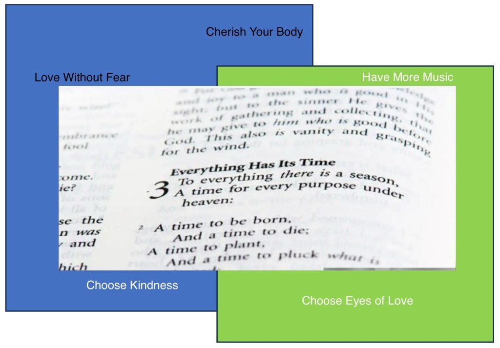 Love Without Fear, Cherish Your Body, Have More Music, Choose Kindness, Choose Eyes of Love?