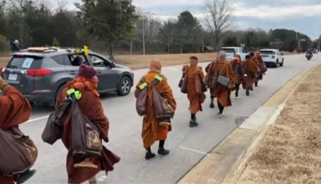 On October 26, nearly two dozen monks from the Huong Dao Vipassana Bhavana Center in Fort Worth, led by Bhikkhu Pannakara, began their walk for a total of 2,300 miles to promote national healing, unity, and compassion. They expect to end their journey on February 12. The center in Fort Worth is the future site of a Buddhist temple, the most ambitious project ever undertaken in our country that will span 14 acres and feature 840 stupas or Buddhist monuments.